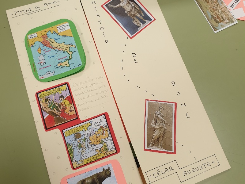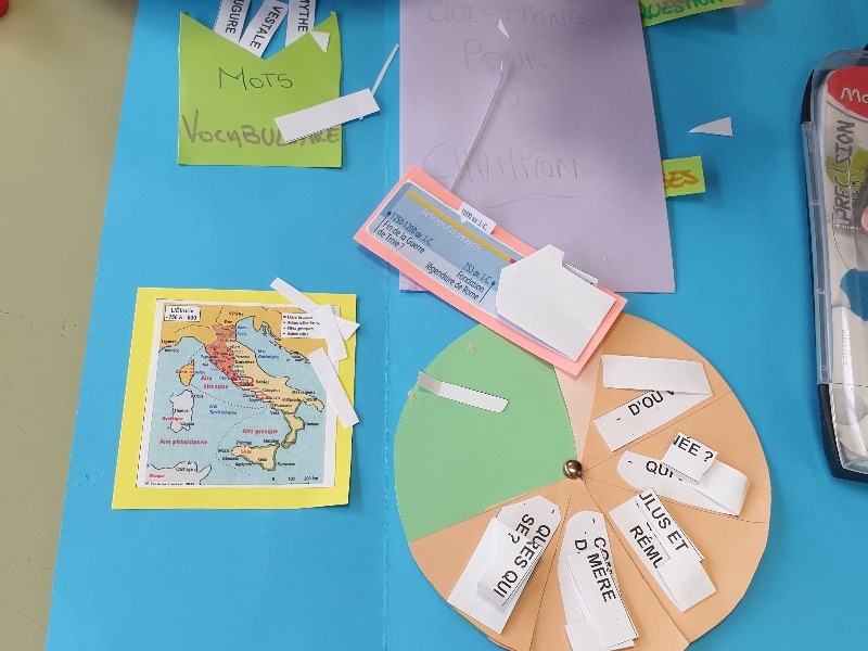 Au Lycée français Molière, avec les classes de 6ème, nous avons réalisé des lapbooks sur le Mythe de la fondation de Rome et l’Histoire de Roma. Cela a permis aux élèves de différencier la légende des recherches archéologiques afin de construire une démarche historique. Ils ont pu mettre aussi en avant leur créativité, en personnalisant chacun leur prorpre lapbook : pliqges, couleurs, création de cartes de questions avec réponses au choix, généalogie, repères géographiques, vocabulaires à retenir…. Ils ont fait preuve d’inventivité, de soin et d’entraide dans le groupe pour obtenir ces beaux résultats qu’ils testeront sur leur entourage !